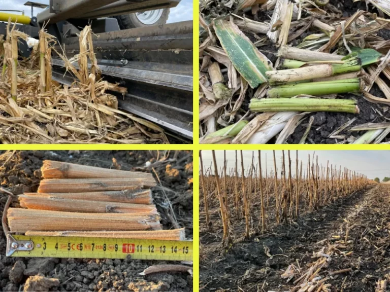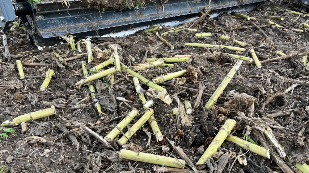 Die Sonnenblumen- und Rapsstoppelreste können sogar mit grünen rohen Stängeln mit hoher Effizienz zerkleinert werden.