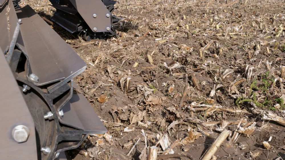 Dank der innovativen Konstruktion der Walzenkörper schneiden die Messer bei der Arbeit nicht nur die Stengel, sondern dringen auch in den Boden ein und führen eine halbwertige Bodenarbeit durch.