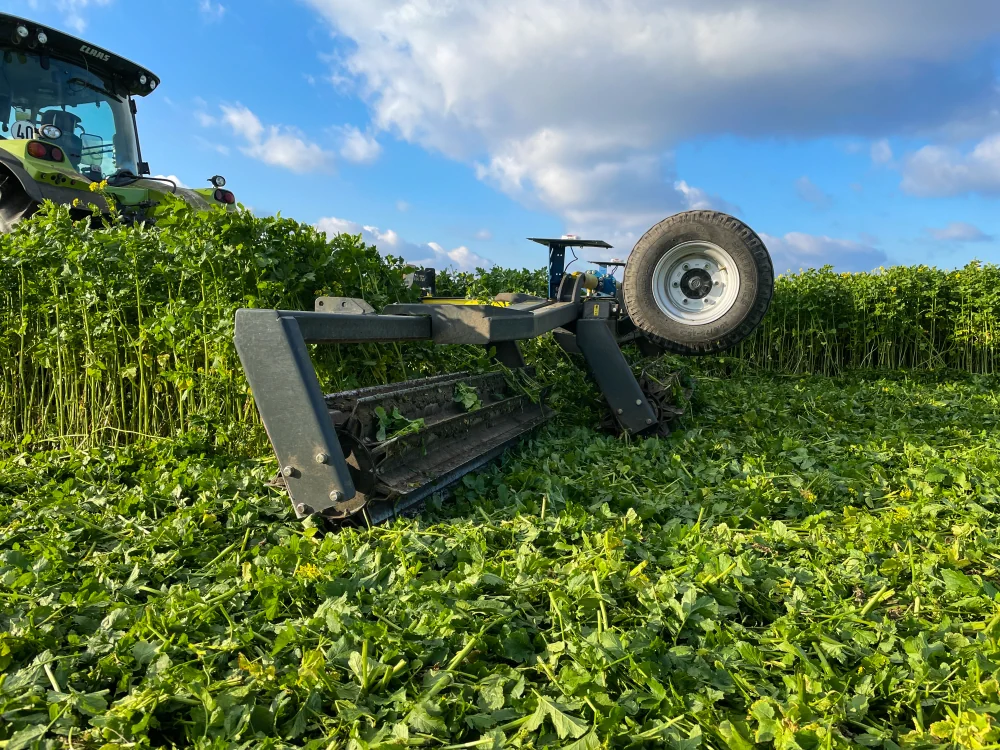 Vor dem Pflügen oder der Grubber-Bodenbearbeitung können die reifen Gründüngungspflanzen ein großes Problem darstellen, aber mit Hilfe der X-Press Walze kann die Bodenarbeit problemlos durchgeführt werden.