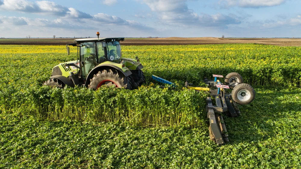 Die X-Press CT 4,5-8,0 Zerkleinerungswalzen zerkleinern die nach der Ernte gebliebenen Stängelreste und Gründüngungspflanzen.